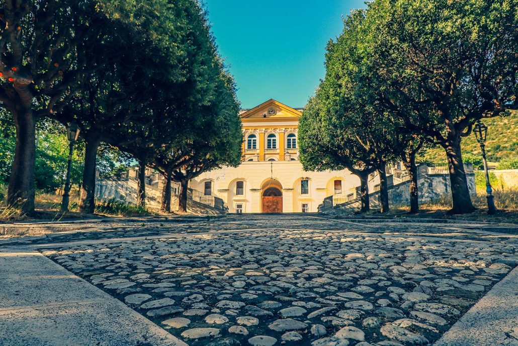 Dall’arco borbonico del borgo di San Leucio si accede al Complesso Monumentale del Belvedere di San Leucio, costruito per essere dapprima una residenza reale di caccia, ma che ben presto divenne il simbolo dell’amore di Ferdinando IV per la sua Real Colonia serica. Qui vi erano sia gli appartamenti reali che le fabbrica di seta, un abbinamento molto innovativo per i tempi che permetteva al sovrano di stare a stretto contatto con i lavoratori.