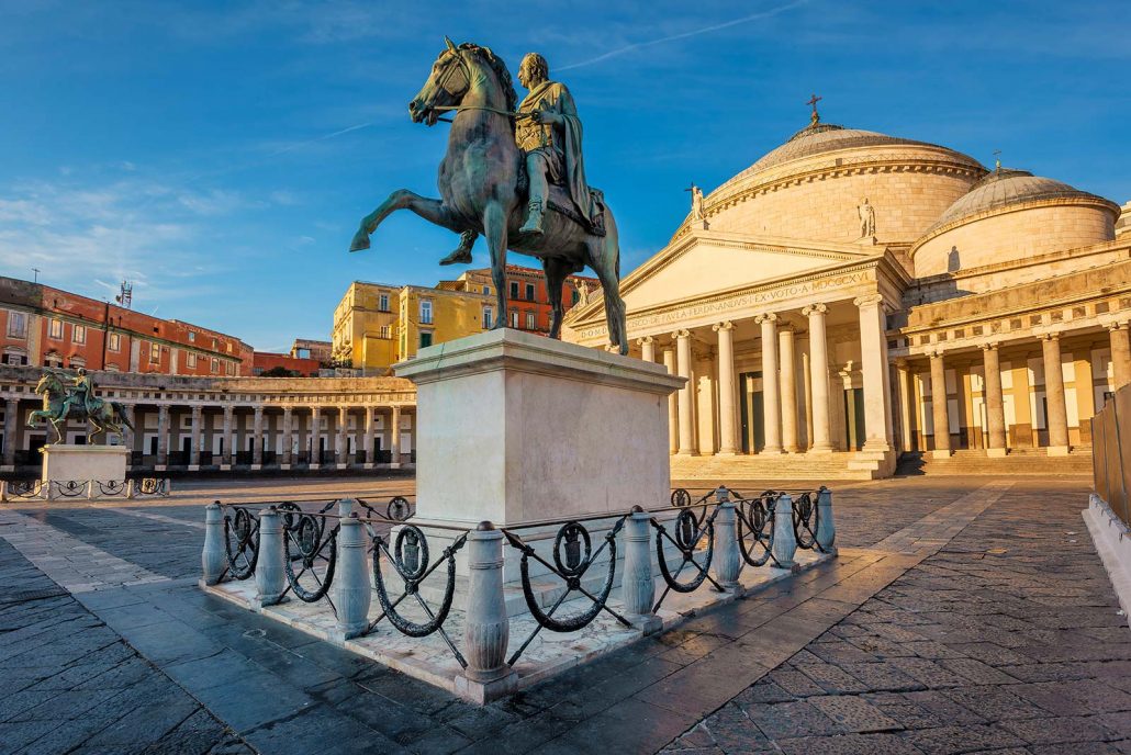 On both sides of the square are the Royal Palace of Naples and the Royal Pontifical Basilica of San Francesco da Paola.
