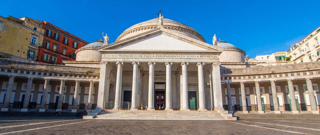 On the opposite side of the Royal Palace, in Piazza Plebiscito, there is the neoclassical Royal Pontifical Basilica of San Francesco da Paola, commissioned by King Ferdinand I as a thank you to the saint who had ensured that the Bourbon crown was restored.